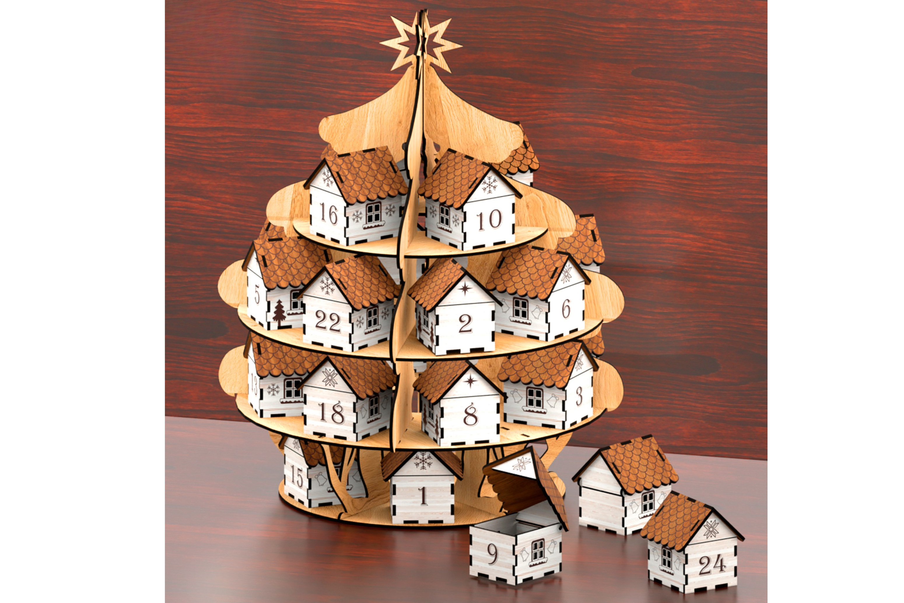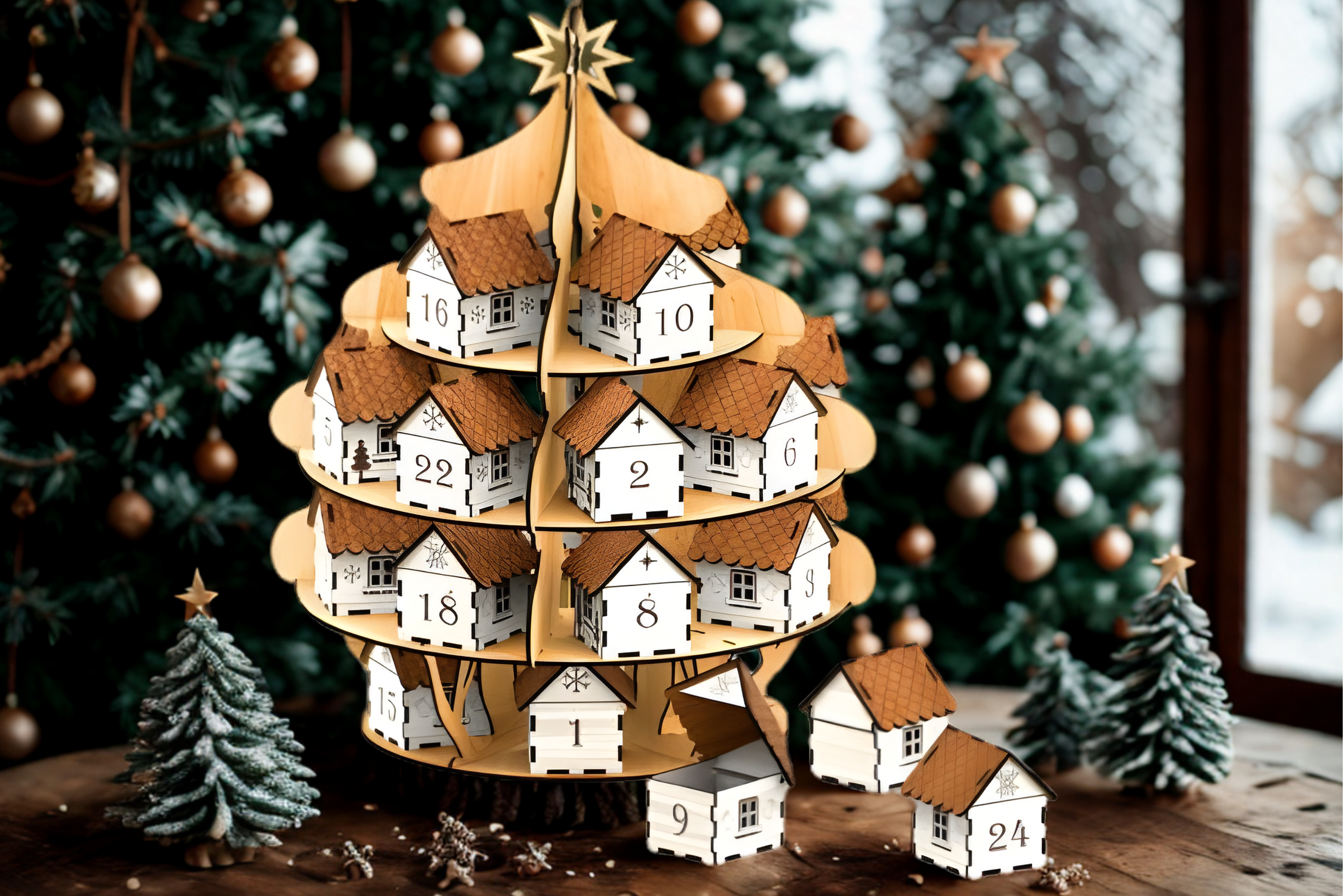 Elevate your holiday celebrations with our Christmas advent calendar featuring 25 exquisite count down houses. Each house is meticulously crafted from wood, measuring 70 x 75 x 65 mm for a delightful aesthetic. The set includes a sturdy stand measuring 350mm x 350mm and standing at 350mm high, offering a stylish display for your festive countdown. Add your own gifts to each house to make this season truly magical.