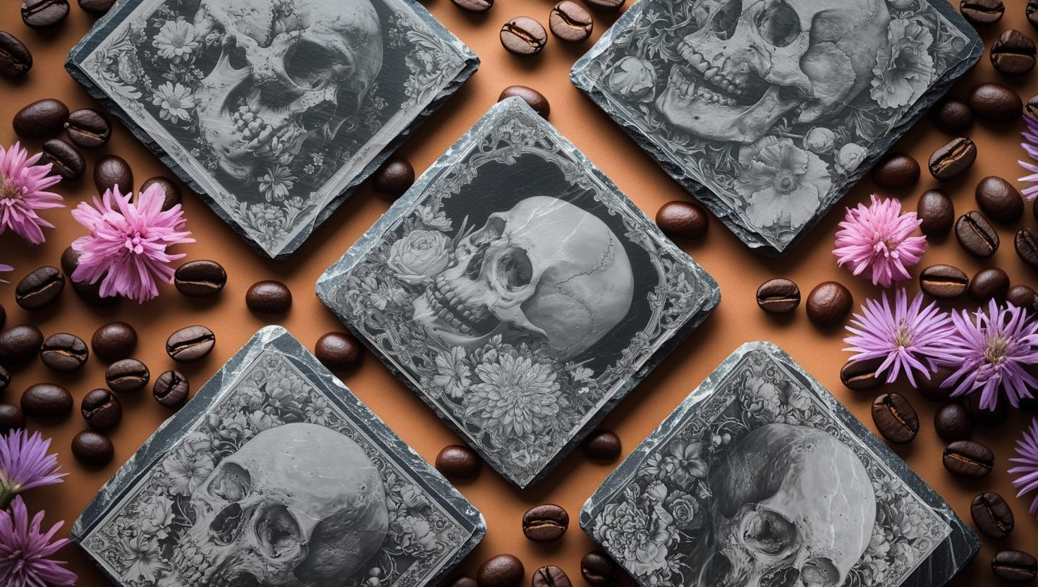 Crafted from durable slate, this engraved coaster features a striking skull design, perfect for adding a gothic edge to your drinkware. Available individually or as a full set of four, each piece offers a unique blend of style and functionality, protecting surfaces while showcasing intricate craftsmanship. Ideal for enthusiasts of alternative aesthetics seeking both practicality and distinctive décor.
