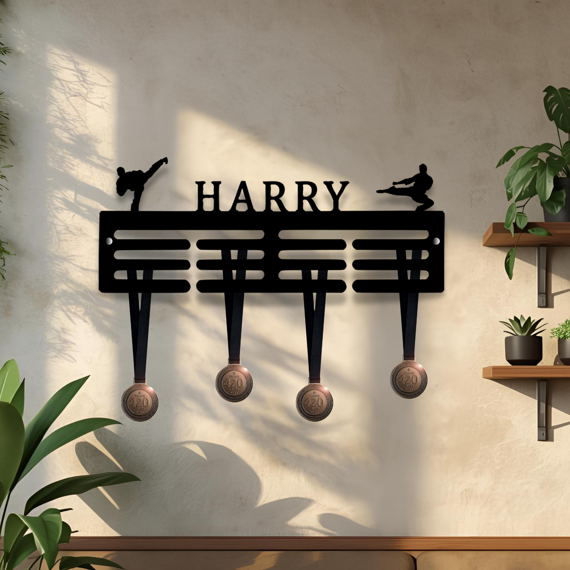 Looking for a unique gift for the karate enthusiast in your life? Look no further than our personalised karate medal hanger. Made from high-quality 5mm acrylic, this stylish display piece comes complete with chrome offstands and wall fixings for convenient hanging. Whether it's for a birthday, graduation, or any special occasion, this customised medal hanger is sure to impress with its sleek design and practical functionality.