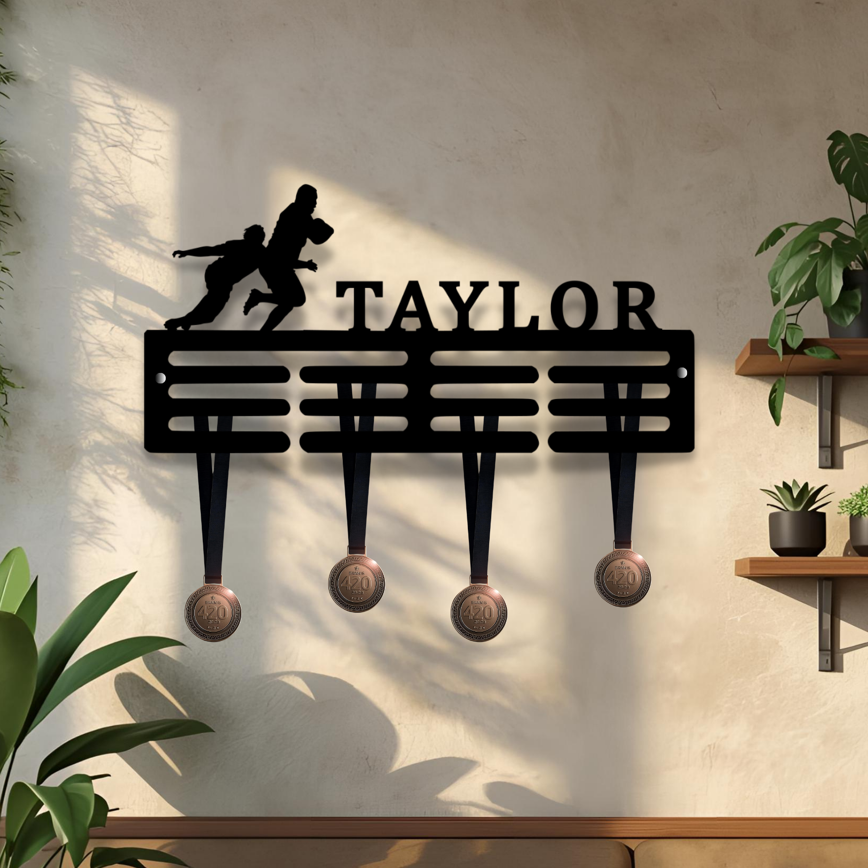 Rugby Medal Hanger custom personalised name ribbon Medal Holder Wall Display Rack