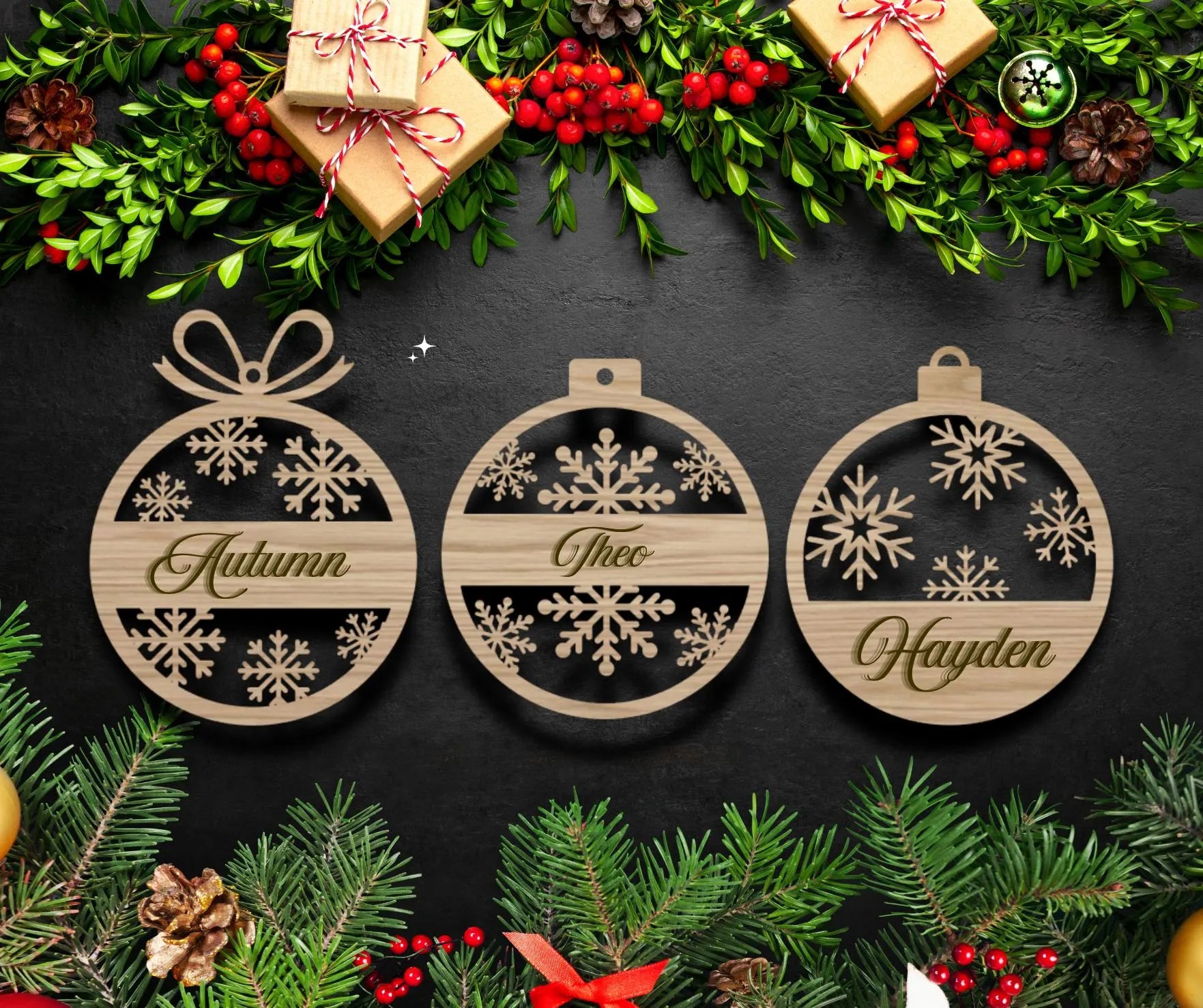 Enhance the beauty of your Christmas tree with our exquisite Personalised Wooden Christmas Tree Decorations. Crafted with precision and measuring approximately 95mm wide, these decorations are a timeless and elegant addition to your festive décor. Customize your own unique display that will be treasured for generations to come. Each decoration come with it own red ribbon.